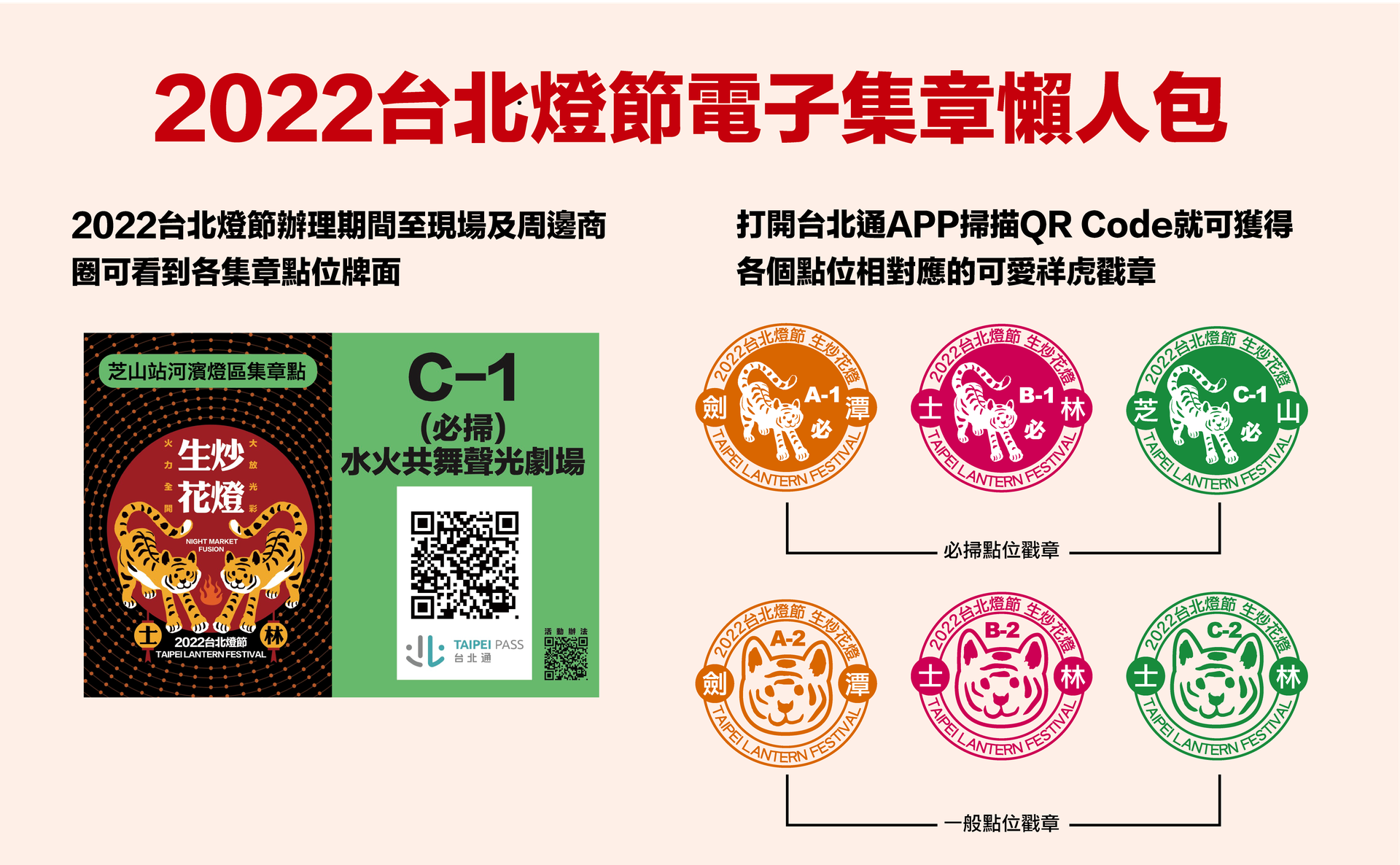 例如 2022 年台北燈節活動期間,台北市府觀傳局推出電子集章抽好禮活動。鼓勵民眾到指定地點,掃描 QRcode 來蒐集三大燈區內的集章點位,集滿 15 個章即可參加抽獎,在為期十天的燈節期間,完成集點的次數愈多,中獎機率愈高。這樣的活動設計,帶動了士林商圈的人潮與商機。