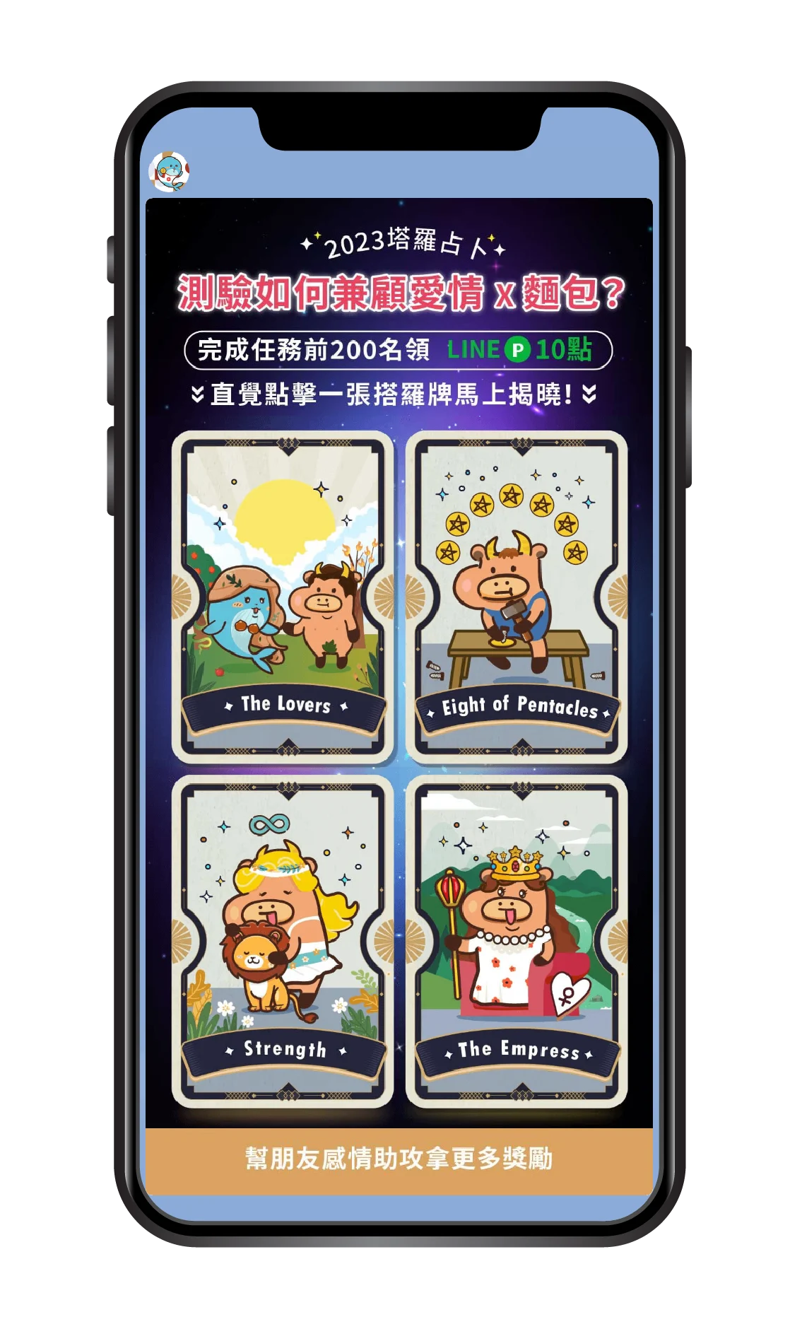 藉由製作可攜帶個人化參數的圖文卡片,並結合遊戲化互動,成功在大幅減少主動推播的情況下,讓好友互動率提升 48%、好友數成長 56%,並大幅降低 15.7% 的封鎖率。