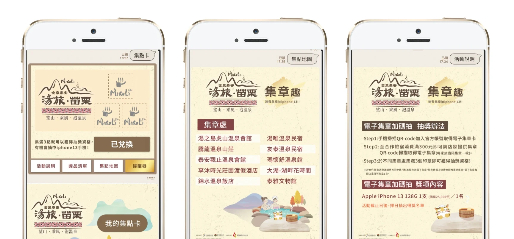 苗栗縣政府同樣也推出「湯旅苗栗集章趣」,可愛插畫風格搭配集點地圖,讓使用者可以一一破關、集點換獎!