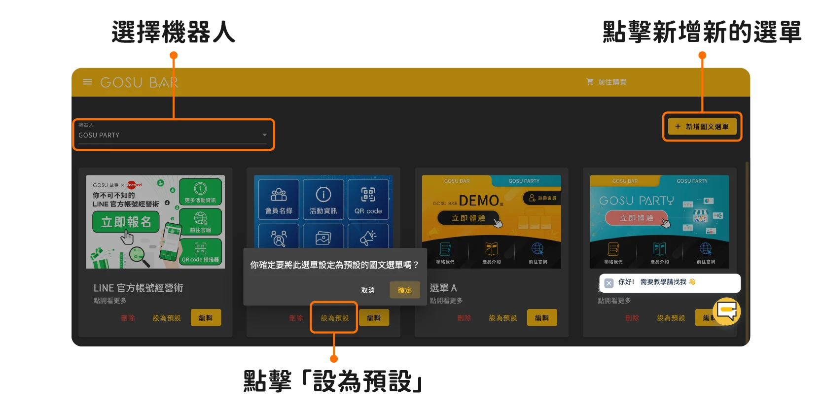 點擊「設為預設」,讓新加入官方帳號的好友自動看到此選單,確保所有新用戶獲得一致的互動體驗。