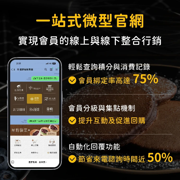 ✔️ 搭配自動化回覆功能,星野餐飲集團大幅優化客服體驗,節省櫃檯來電諮詢時間近 50%,實現客服線上線下整合。