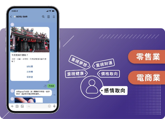 「想要全年無休、自動化推薦商品嗎?」透過人性化問答,蒐集顧客的習慣與需求,即時精準推薦顧客適合的商品,成功引導用戶進行購買。