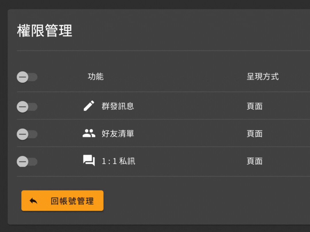 可建立多個行銷互動流程,打造風格截然不同的行銷活動,對話式互動行銷除了應用於智能客服與諮詢服務,更可透過遊戲化行銷的方式與標籤化分眾管理,達成精準行銷用途,有效提升目標轉換率、優化再行銷成效,一鍵儲存就能即時更新。