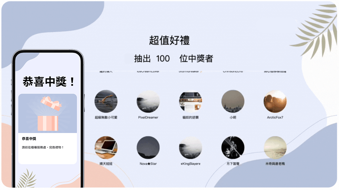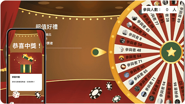 一鍵抽出活動的幸運得主!透過生動有趣的抽獎畫面,將活動氣氛推到最高點