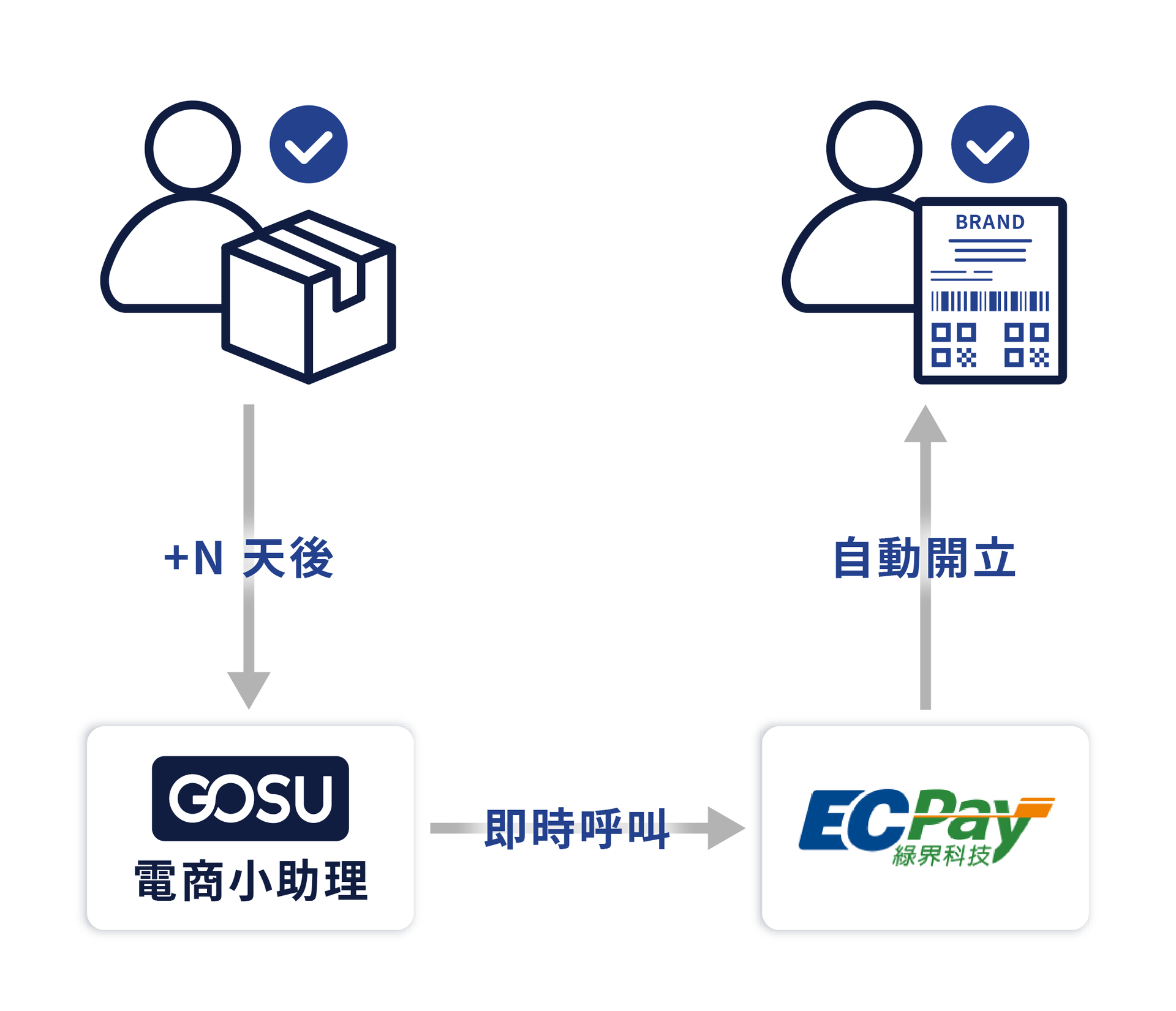 可於商品配送完成後的指定時間自動開立電子發票,無需進 LINE 開店幫手後台人工核對,環保又省力!