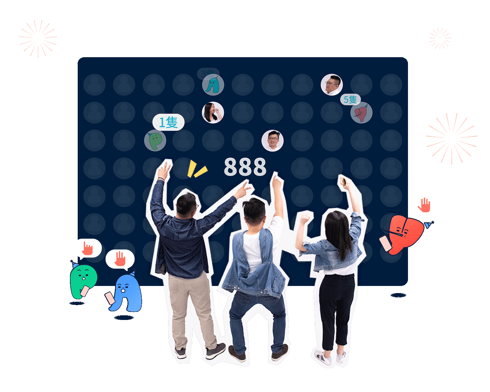 簡單的手指數隻遊戲,搭配生動有趣的抽獎畫面,大人小孩都能輕鬆參與。在小型場地中成為活動焦點,維持氣氛熱度。在大型活動場地中,把握住洶湧人潮的目光,讓觀眾為您停下腳步。