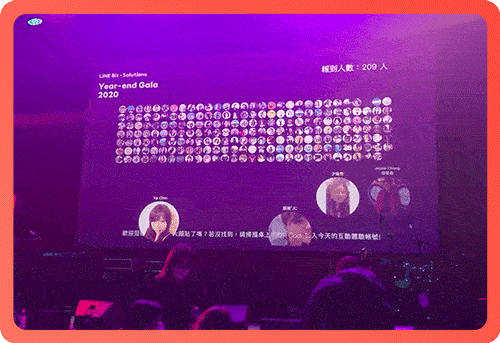 小至 10 人、大至 300 人的線上線下活動,都非常適合「品牌簽到牆」,客戶掃描 QRcode 就加入品牌官方帳號,接獲「簽到完成」通知的同時,將客戶頭貼顯示於大螢幕上,零時差完成報到流程。安永金融科技也在 2020 年,為 LINE Biz-Solutions 的年末活動帶來驚豔的開場。