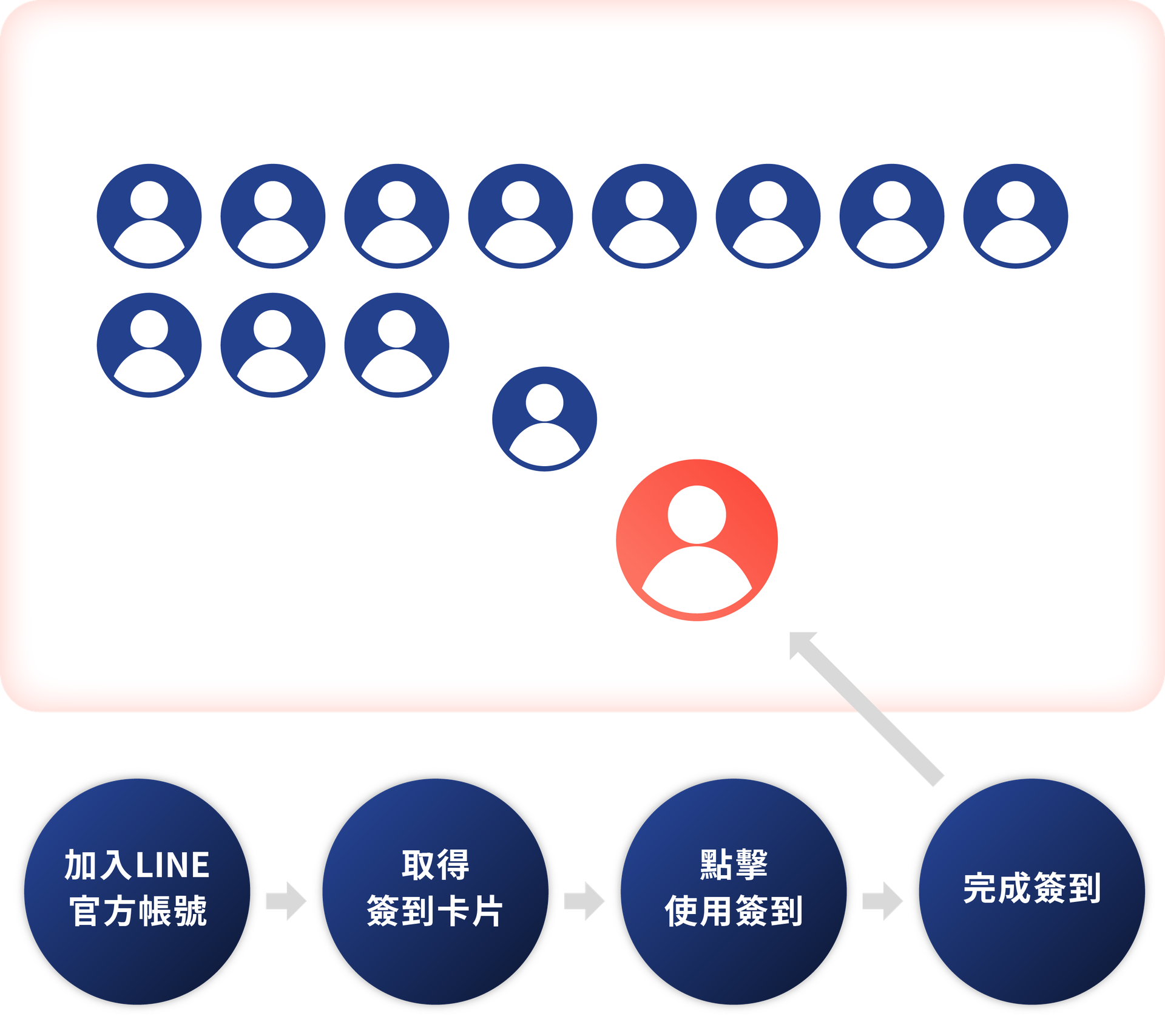 過去簽到只限於紙本填寫,客戶留下名字後便離開,無法建立溝通管道,也錯失一個互動的大好機會。